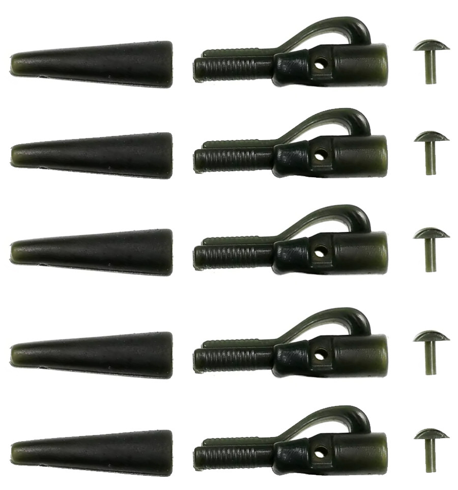- Конус (5 шт.): Выполнен из высококачественного, прочного и упругого силикона. Этот элемент надвигается на ножку клипсы, фиксируя грузило и вертлюг. Его плотность посадки регулирует усилие, при котором происходит сброс грузила, обеспечивая безопасность монтажа при зацепах.