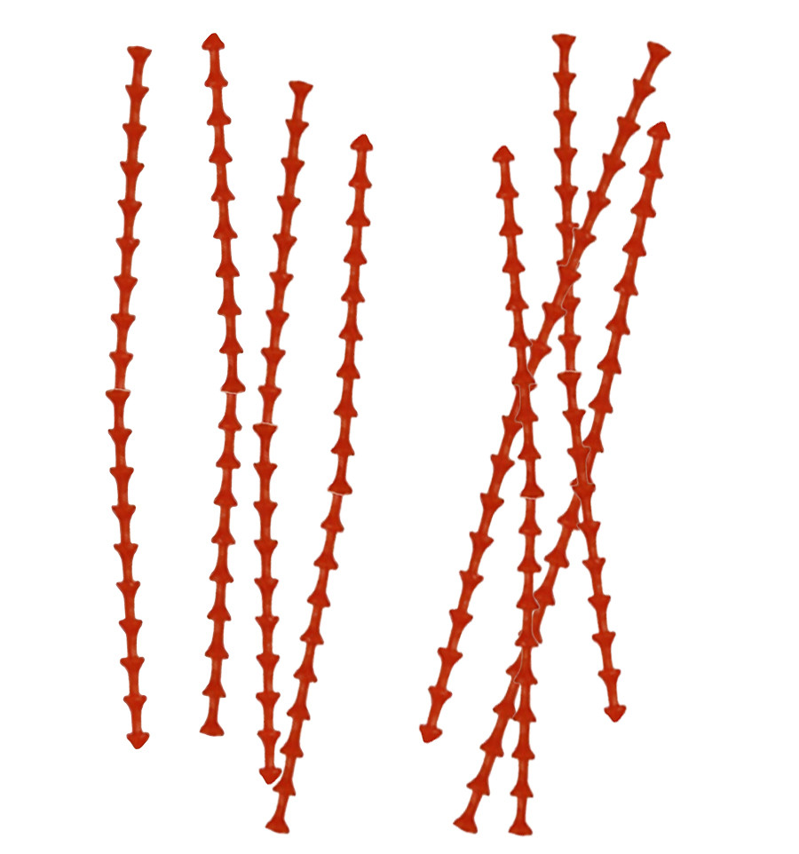 Для фиксации насадки проденьте волос через специальное ушко на бойле или насадке. Затем возьмите полоску стопоров и, при необходимости, отделите две соединенные "капли". Аккуратно вставьте волос между этими двумя частями стопора и протяните его до упора вплотную к насадке. Убедитесь, что стопор плотно прилегает к насадке, надежно удерживая ее на волосе.