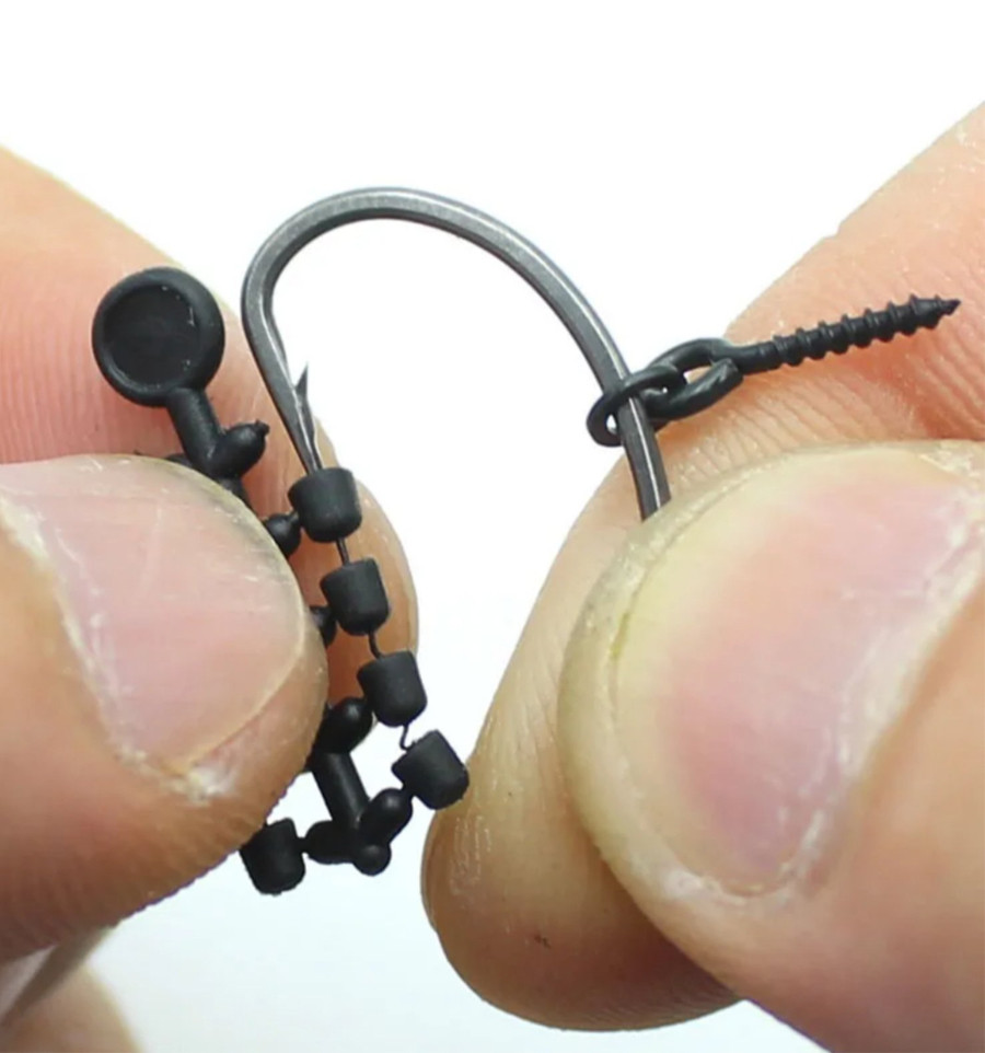 Стопор используется как ограничитель движения держателей насадки, таких как специализированные винты, иглы, вертлюги и кольца, обеспечивая им правильное конечное положение на крючке.
