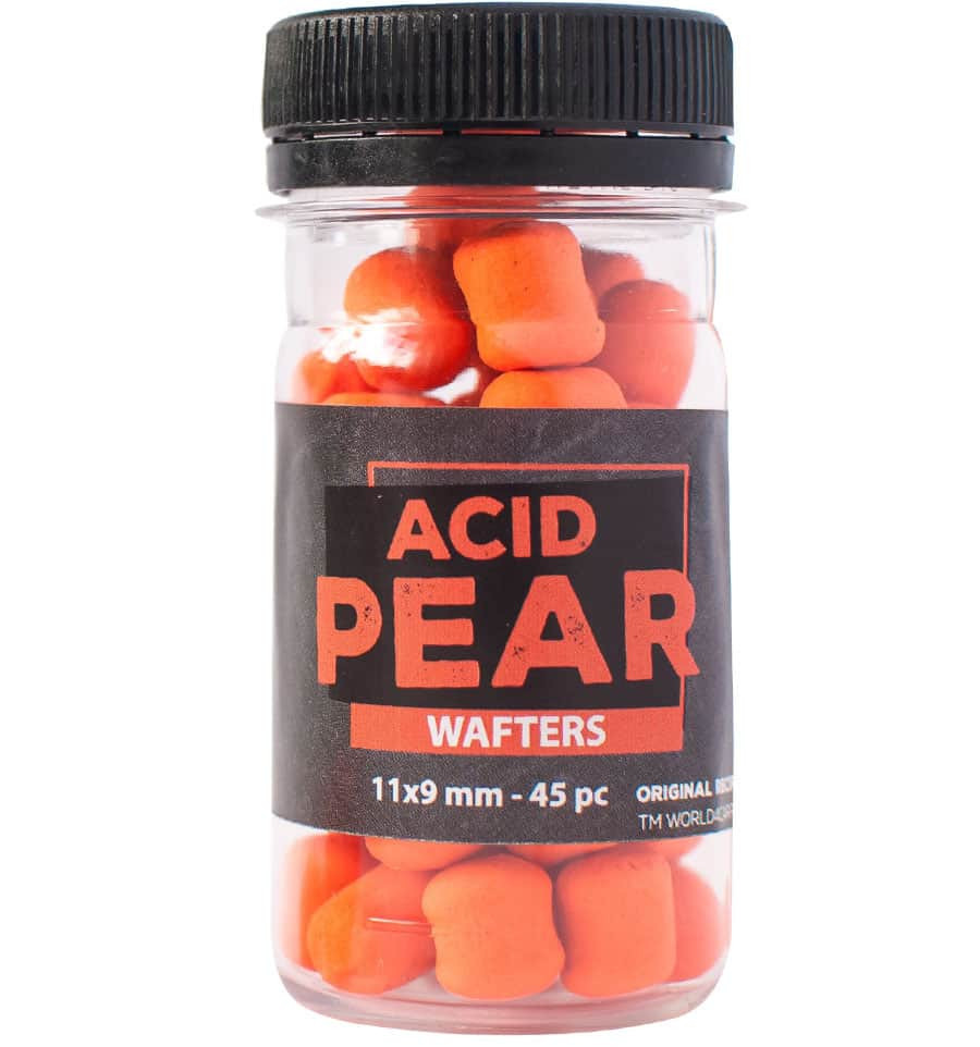 Бойлы нейтральной плавучести wafters Acid pear (кислая груша) изготовлены в форме дамбеллсов (dambells). По плотности они несколько легче воды, но при этом не поднимают крючок от дна. Благодаря этому свойству можно сделать привлекательную для карпа презентацию вашей насадки
