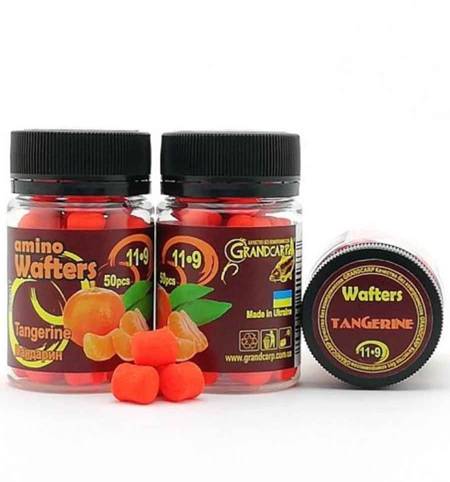 Бойлы нейтральной плавучести Grandcarp Amino Wafters Tangerine (Мандарин) Эти бойлы в форме дамбеллсов немного легче воды, но их подъемной силы все же недостаточно, чтобы оторвать крючок от дна. Поэтому при их использовании можно получить очень интересную презентацию, когда крючок лежит на дне, а бойл приподнят над ним на длину волоса