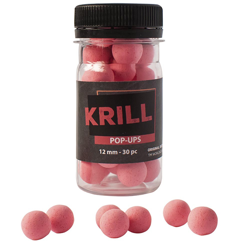 Бойлы плавающие Krill (криль). Этот бойл создавался для тяжелых условий ловли (условий соревнований, прессинга, чрезвычайно низкой активности рыбы). Бойл имеет натуральный аромат криля, который считается проверенной классикой. А не пестрые цвета бойла ассоциируются с естественным кормом у рыбы