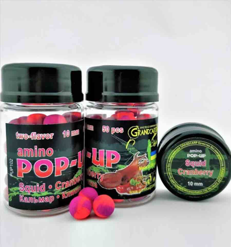Амино поп ап КАЛЬМАР•КЛЮКВА Grandcarp. Эти яркие шарики очень эффективны при любой температуре воды и в любой период рыболовного сезона