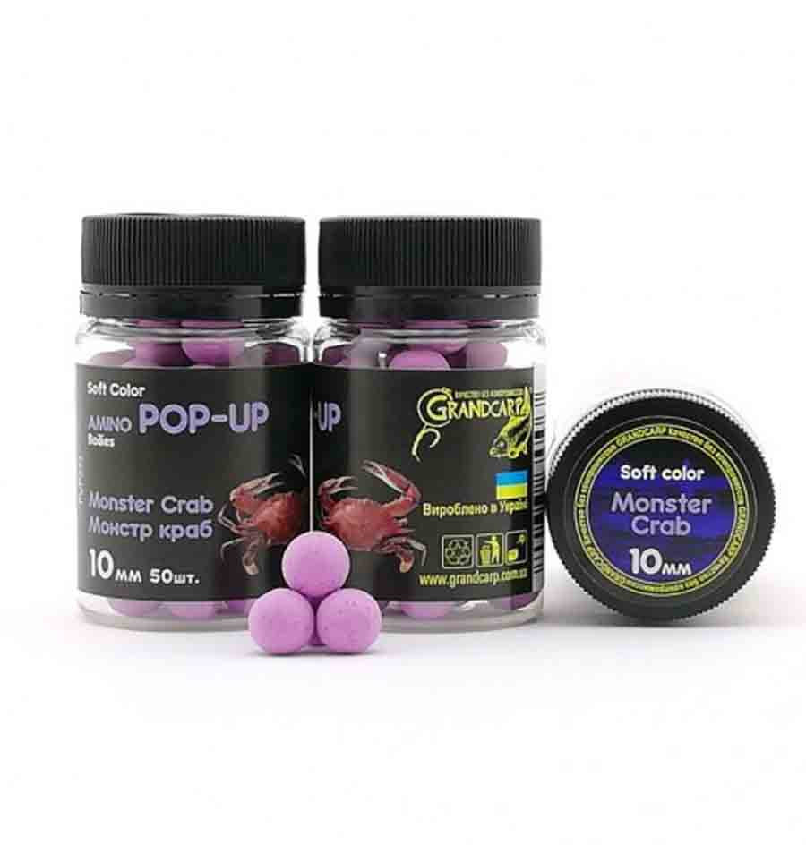 Амино поп ап МОНСТР КРАБ Soft Color Grandcarp Ø10 мм. Карп, конечно живет в пресной воде, но морепродукты никогда не оставят его равнодушным. Сочетание ароматов кальмара и осьминога, приправленное черным перцем, это именно то, что спасет вас даже в бесклевье.