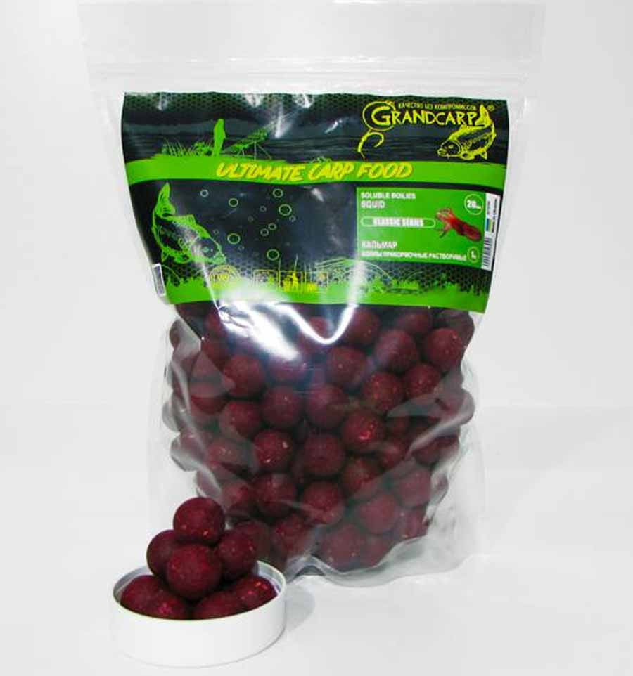 Бойлы прикормочные растворимые Grandcarp КАЛЬМАР серия CLASSIC, 1 кг. Эти бойлы мы специально разработали для любителей простых миксов, состоящих из минимального количества ингредиентов. Мы не смогли отказаться лишь от двух дополнительных компонентов – комплекса полиферментов и аминокомплекса