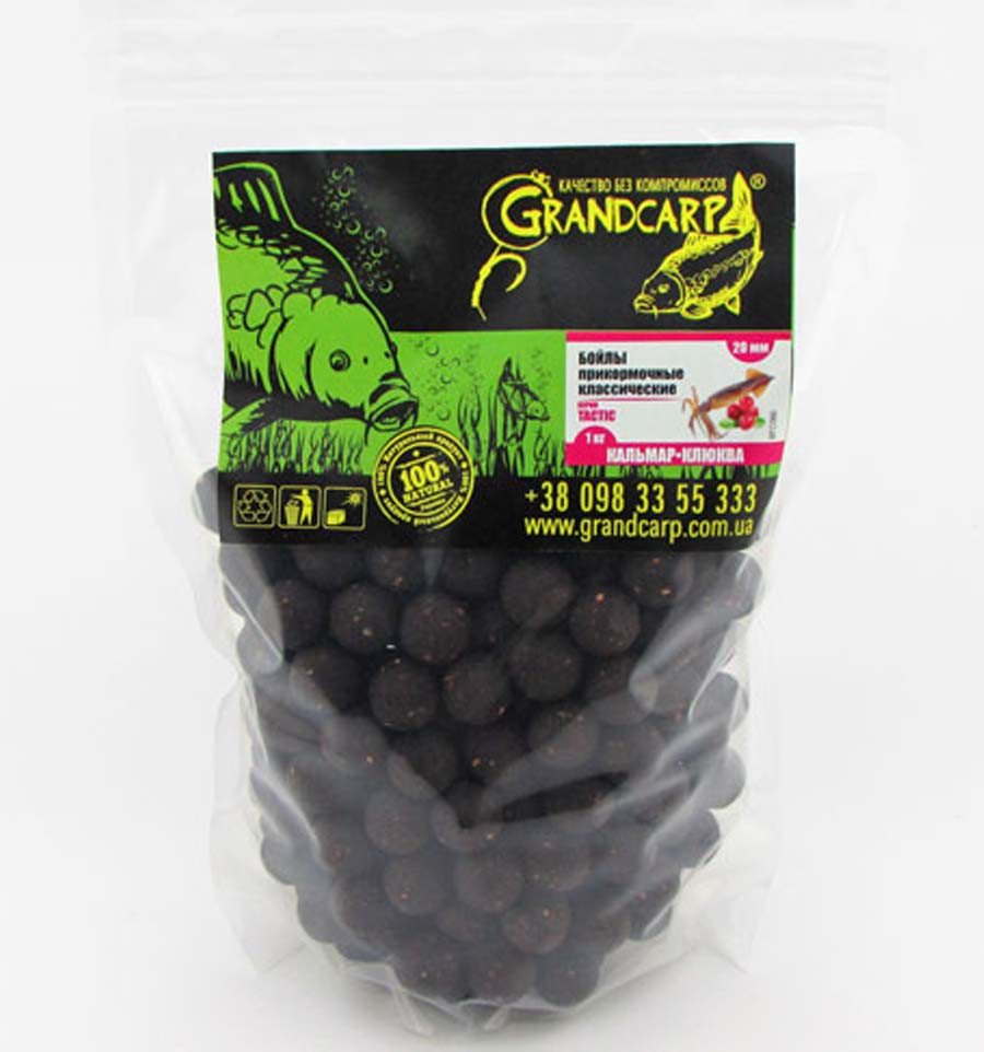 Бойлы прикормочные вареные Grandcarp КАЛЬМАР • КЛЮКВА серия TACTIC Ø20 мм, 1 кг. Эти бойлы мы специально разработали для любителей простых миксов, состоящих из минимального количества ингредиентов. В составе аттрактивной части бойлов акцент сделан на вкусовые и запаховые привлекатели и стимуляторы аппетита