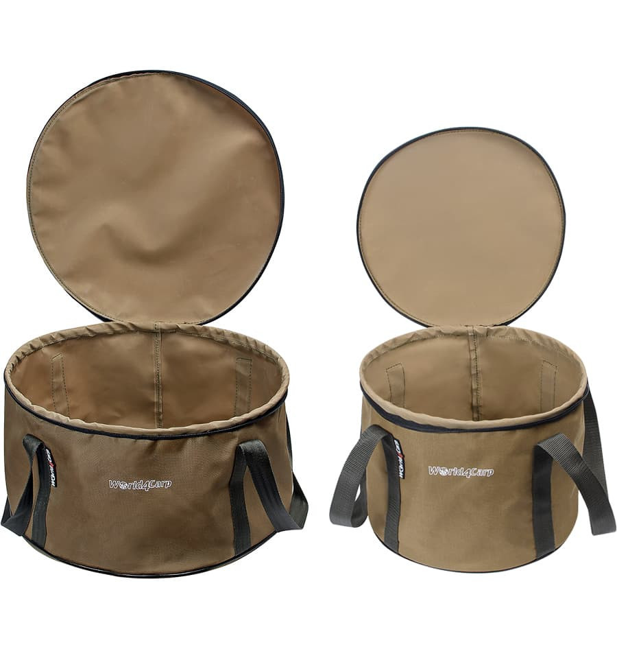 Ткань Оксфорд, кольцо для придания формы и ручки для переноски. Удобное для транспортировки, легко моется и не занимает много места. Крышка ведра для прикормки позволяет готовой смеси сохраняться дольше и не обветриваться. Эргономичные бегунки позволяют открывать и закрывать ведро для прикормки даже мокрыми руками.