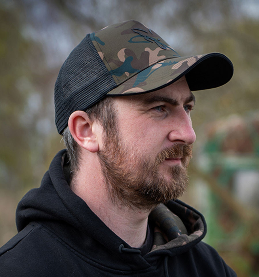 Превосходный головной убор от FOX отлично дополнит ваш гардероб рыбака карпятника. Классическая бейсболка с сеточкой защищает от солнца и поддерживает естественную вентиляцию. Камуфляжная кепка Фокс отлично подойдет к другим элементам летней рыболовной одежды
