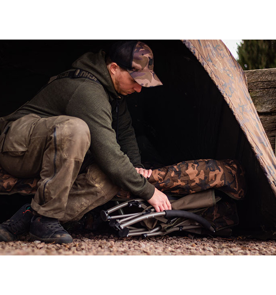 Лёгкое и компактное кресло для рыбалки и туризма в камуфляжной рацветке. Ширина: 51см, Глубина сиденья: 40см, Высота спинки: 58см, Высота: 20см Вес: 2.75кг