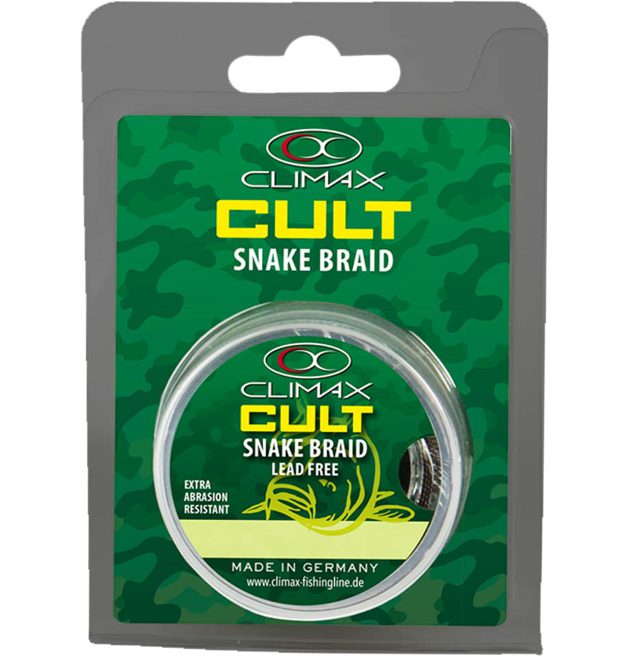 Climax Cult Snake Braid Leadcore – бессвинцовый материал для лидкора со свойствами обычного лидкора. Данный лидкор очень крепкий, быстро тонет, гладкий и эластичный. Плотное переплет позволяет легко вязать и получать высокую прочность на узлах.