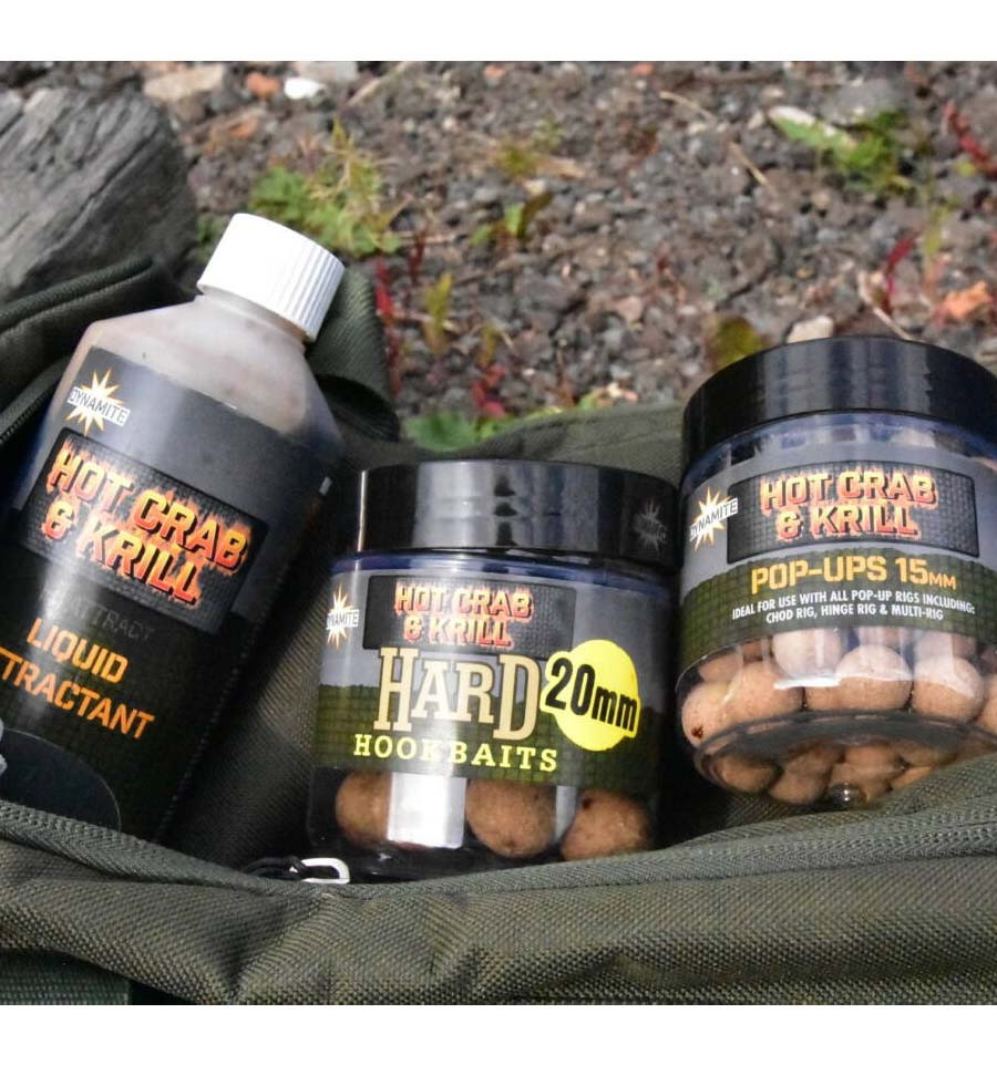 Жидкий аттрактант нового вкуса Hot Crab & Krill. Рекомендуется для замачивания или регидратации бойлов/пеллетсов или в качестве добавки к сухим или зерновым миксам (формула подходит для растворимых пакетов).