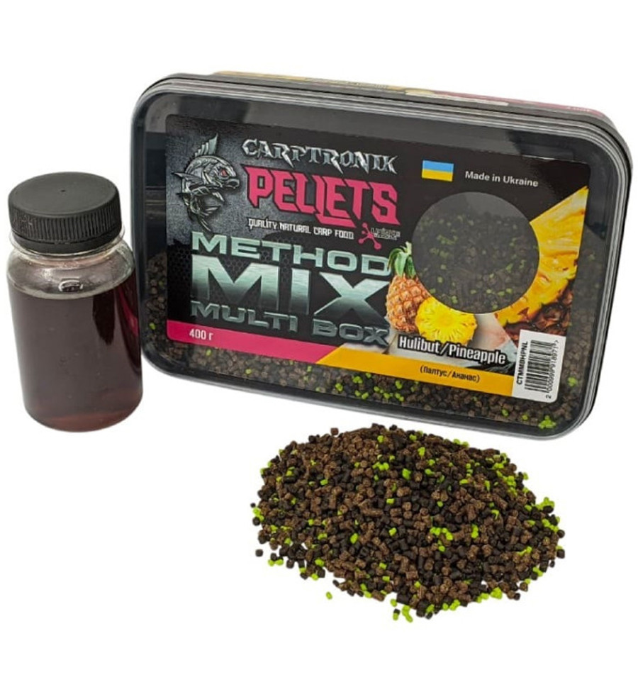 Инновационный метод микс Carptronik Method Mix Multi Box - Halibut/Pineapple, разработанный для привлечения рыбы необычным, но очень привлекательным сочетанием ароматов. В комплект входят пеллетс премиум-класса 100 мл жидкого аттрактанта.