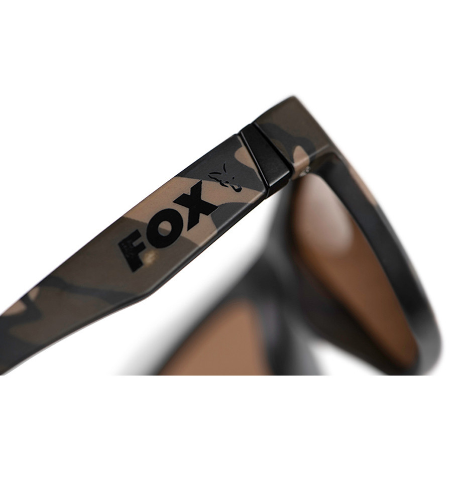 Поляризационные очки для рыбалки в камуфляжной оправе в стиле Avius с коричневыми тонированными линзами. Очки Фокс защитят ваши глаза от яркого солнца на рыбалке, ведь линзы имеют защиту категории CAT 3 и степень защиты UV400.