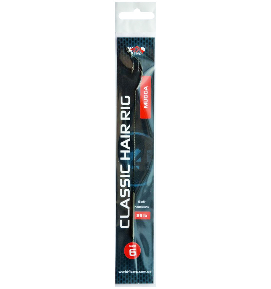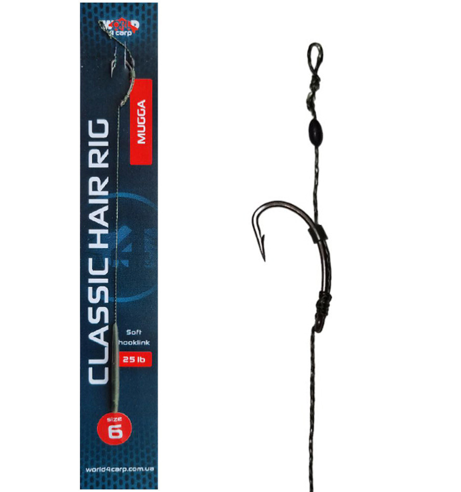 Классический волосяной монтаж для карповой и флэт фидерной ловли. Длина поводка составляет 17 см. вместе с крючком, что является самой распространённой длиной в карповой ловле. При изготовлении поводка используется мягкий, тонущий поводочный материал без оплетки тестом 25 lb в камуфляжном цвете.