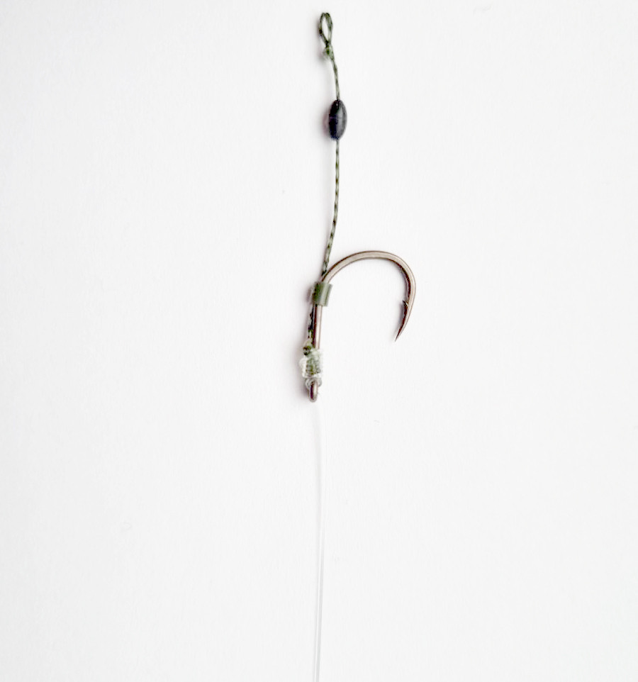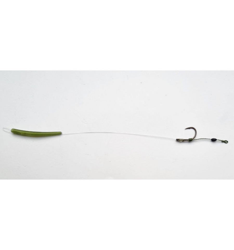 Классический волосяной монтаж для карповой и флэт фидерной ловли. Длина поводка составляет 17 см. вместе с крючком, что является самой распространённой длиной в карповой ловле. При изготовлении поводка используется мягкий, тонущий поводочный материал без оплетки тестом 25 lb в камуфляжном цвете.