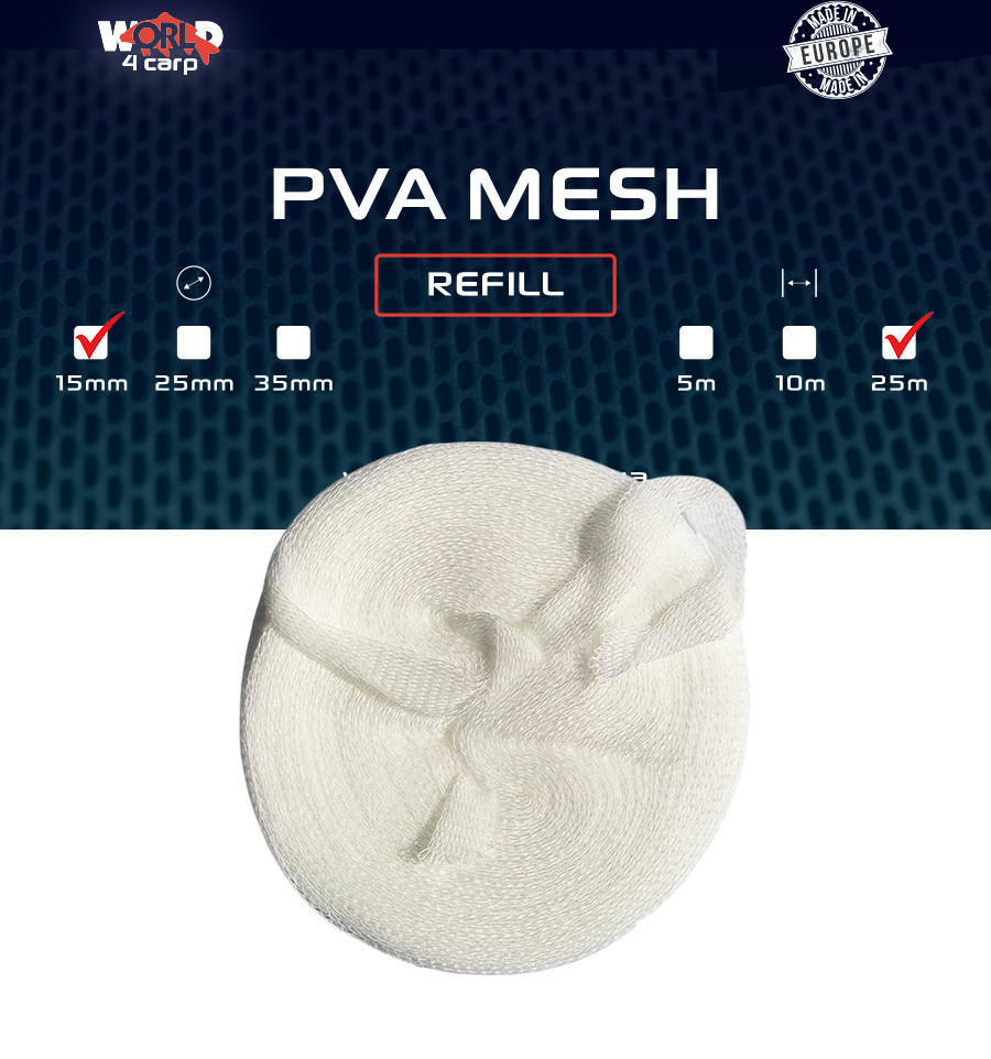 Эта ПВА сетка диаметром 25 мм изготовлена из высококачественного водорастворимого ПВА материала, который широко используется современными карпятниками. Применение ПВА материалов позволяет эффективно доставлять прикормку непосредственно к вашей оснастке.