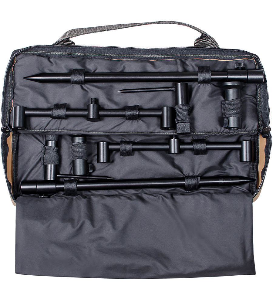 Практичный малогабаритный набор стоек, буз баров, стоек для помоста и стабилизаторов в сумке-чехле. Набор рассчитан на 2 карповых удилища. Занимает очень мало места и имеет лёгкий вес. Материал исполнения оборудования - алюминий, а чехла водонепроницаемый оксфорд цвета Coyote (Койот)