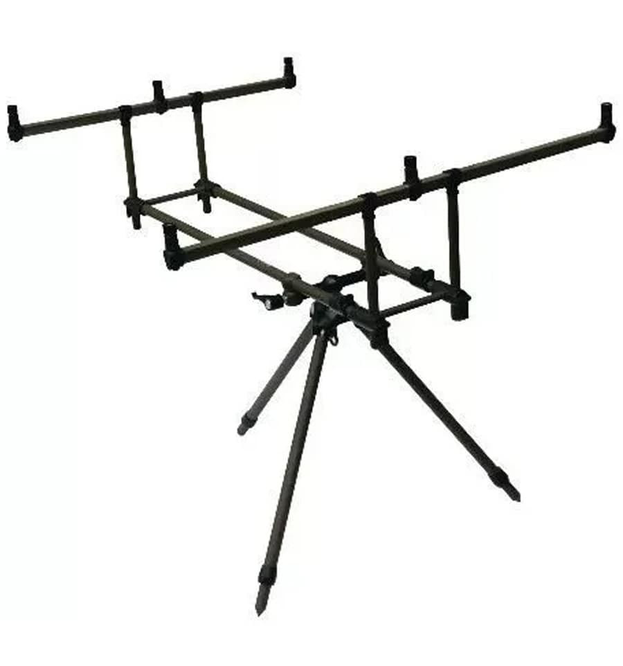 Надежный, очень устойчивый род-под на три удилища, имеющий в основании треногу и оснащенный множеством гибких регулировок для идеальной подстройки положения удилищ на любых береговых неровностях.