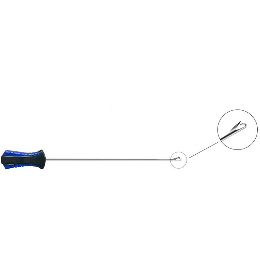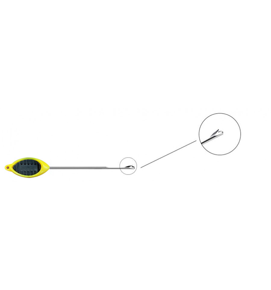 Игла предназначена для того, чтобы легко продевать поводок через стики. На конце стальной иглы предусмотрена защёлка. Это позволяет петле поводка протягиваться через стик без разрыва пва сетки. Пластиковый ручкодержатель с резиновыми, рефлеными вставками не скользкий, мягкий на ощупь, удобный для работы.