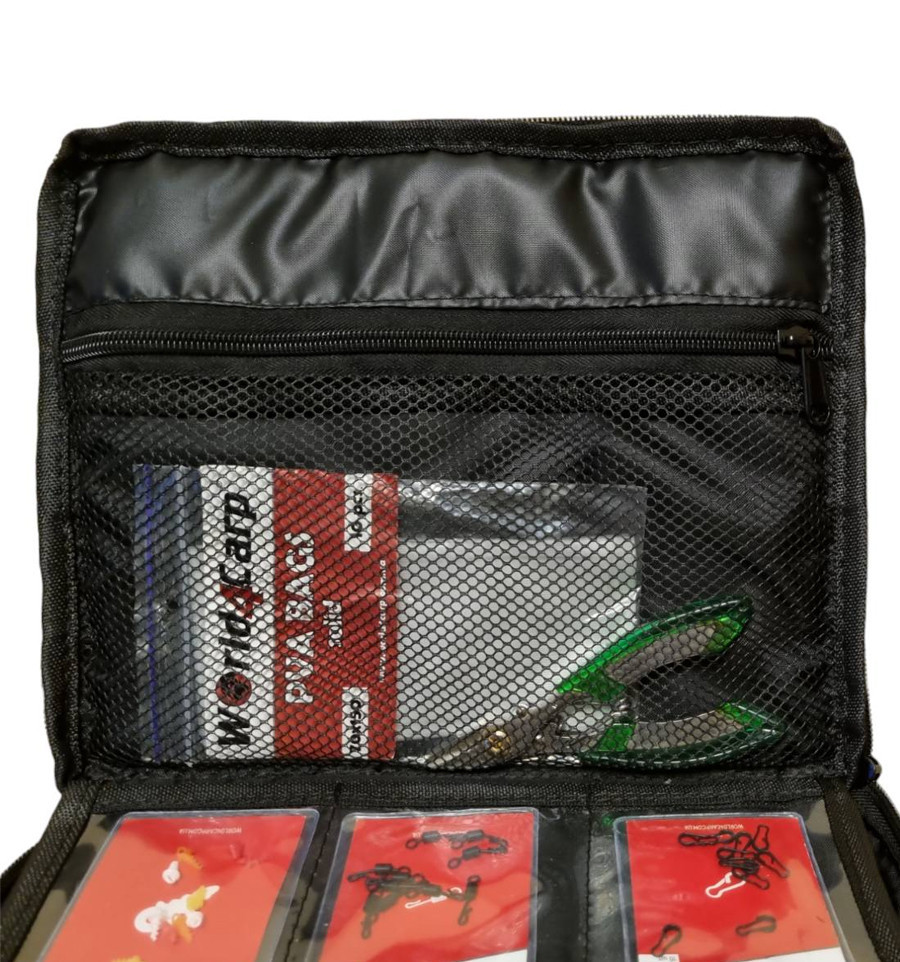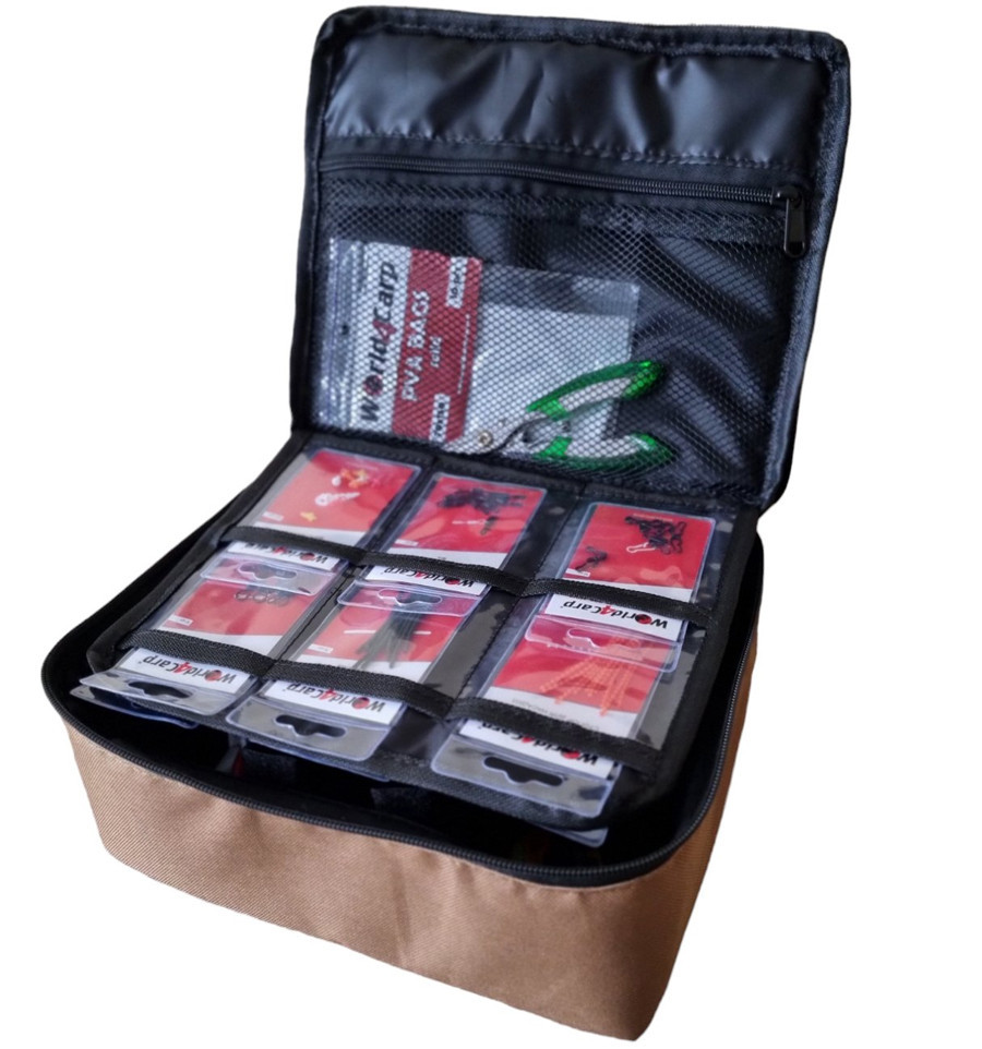 Структура сумочки напоминает книгу, что позволяет «перелистывать» отдельные секции для лёгкого и быстрого доступа к любой снасти.