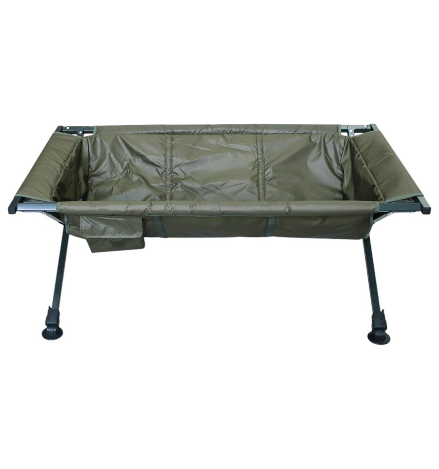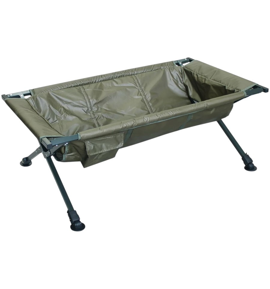 Мат люлька на алюминиевой раме предназначен для бережного обращения с трофейной рыбой в процессе взвешивания и фотографирования. Каркас выдержит нагрузки до 50 кг, а мягкий мат не поранит рыбу. По бокам мата расположены вставки из прорезиненной сетки для стекания воды.