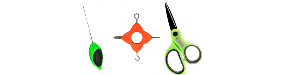 Універсальні рибальські ножиці для роботи з ліскою та плетеними шнурами. Мають вбудовану точилку для заточування рибальських гачків. Мають не ковзну ручку та мікрозубці на гострому лезі