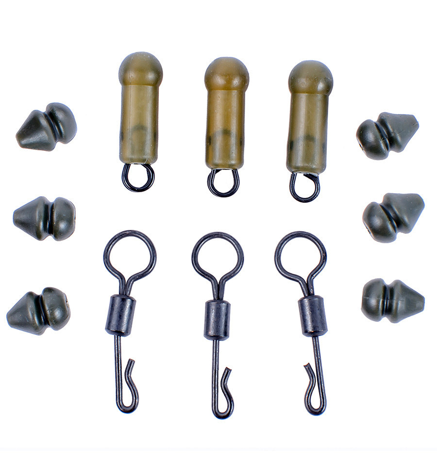 Набір ідеально підходить для створення монтажу "Вертоліт", який рекомендований для використання на водоймищах з мулистим або нерівним дном, а також при необхідності виконувати наддалекі закидання. Монтаж простий у складанні: основна волосінь чи шок-лідер пропускається через намистини та вертлюг, потім кріпиться грузило через швидкознімну застібку. Повідець кріпиться до вертлюга, який вільно обертається між намистинами на основній волосіні.