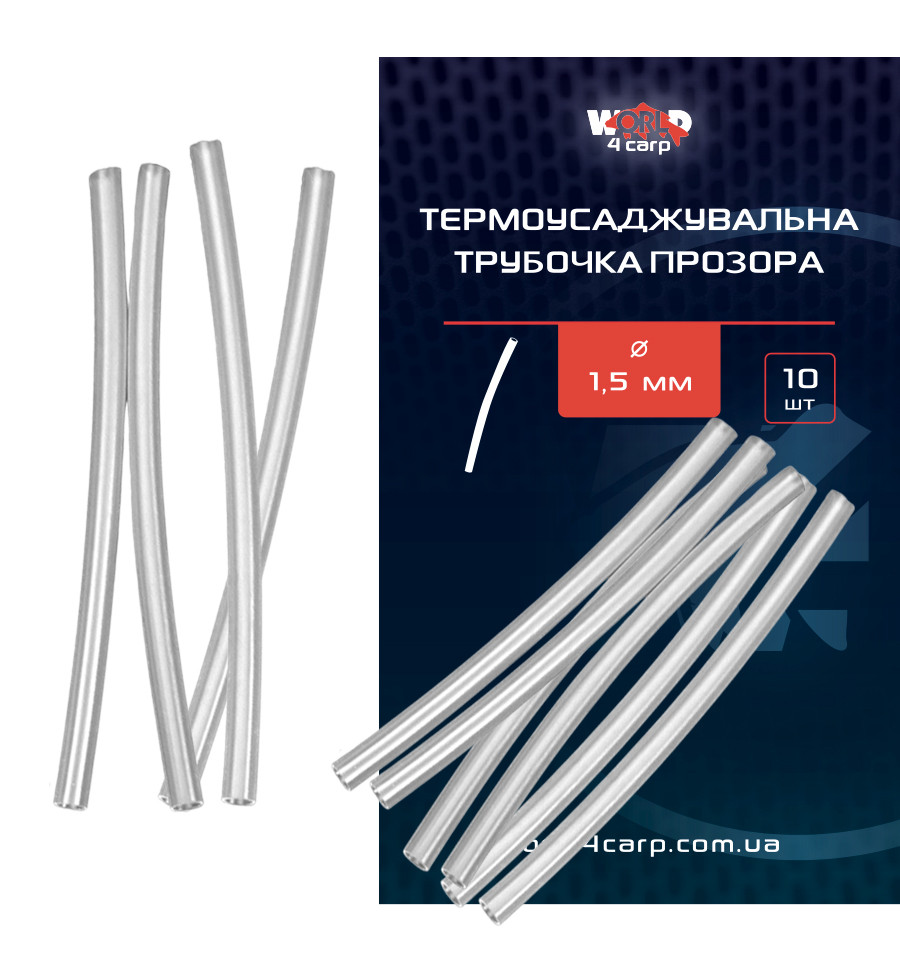 Цей універсальний компонент виконує дві ключові задачі: допомагає оптимізувати механіку гачка і виключає необхідність використання клею для фіксації. З прозорою термозбіжною трубочкою Ø 1,5 мм створення надійних, ефективних і непомітних рибальських монтажів стає простим і швидким процесом