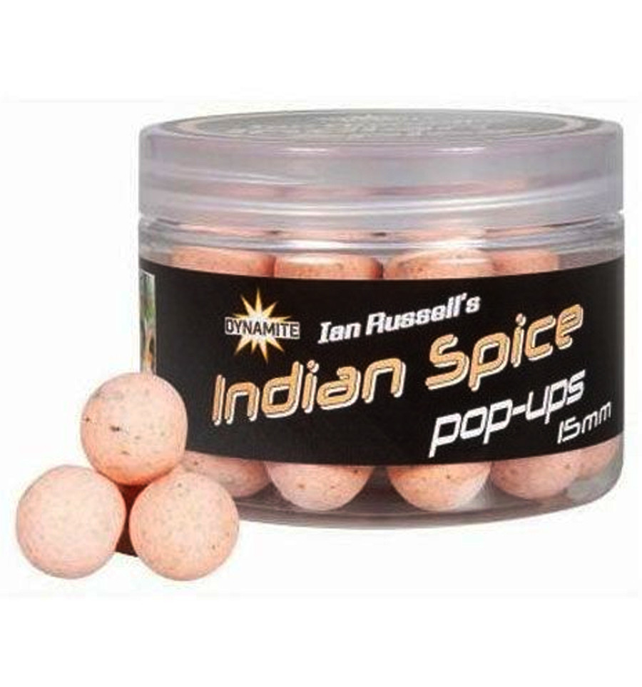 Поп ап бойли Dynamite Baits Ian Russell Indian Spice Pop-Ups ідеально підходять для використання в чод-ригах, D-ригах, а також у комбінації з бойлами для створення сніговика або інших збалансованих оснащень. Для додаткової привабливості можна використовувати дипи та бустери з аналогічним ароматом Indian Spice.