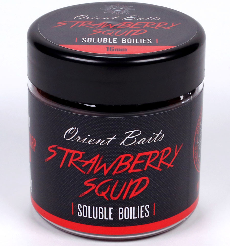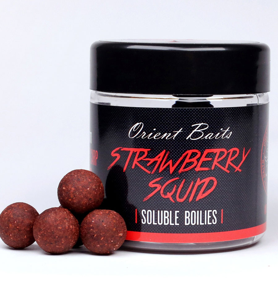 Розчинні бойли Orient Baits Soluble Masters Series – це насадка високого ступеня привабливості. В основі наших бойлів борошно кальмару, живильні екстракти, ферментовані та екструдовані інгредієнти, включені продукти з багатим амінокислотним складом. Прянощі бойлу надає добавка Robin Red. До складу бойла входить виключно якісна арома. Також використана «родзинка», яка затемнює насадку і не відлякує уважного коропа. Розчинний насадковий бойл Orient застосовують як окрему насадку або в комбінації з плаваючим бойлом pop. Up.