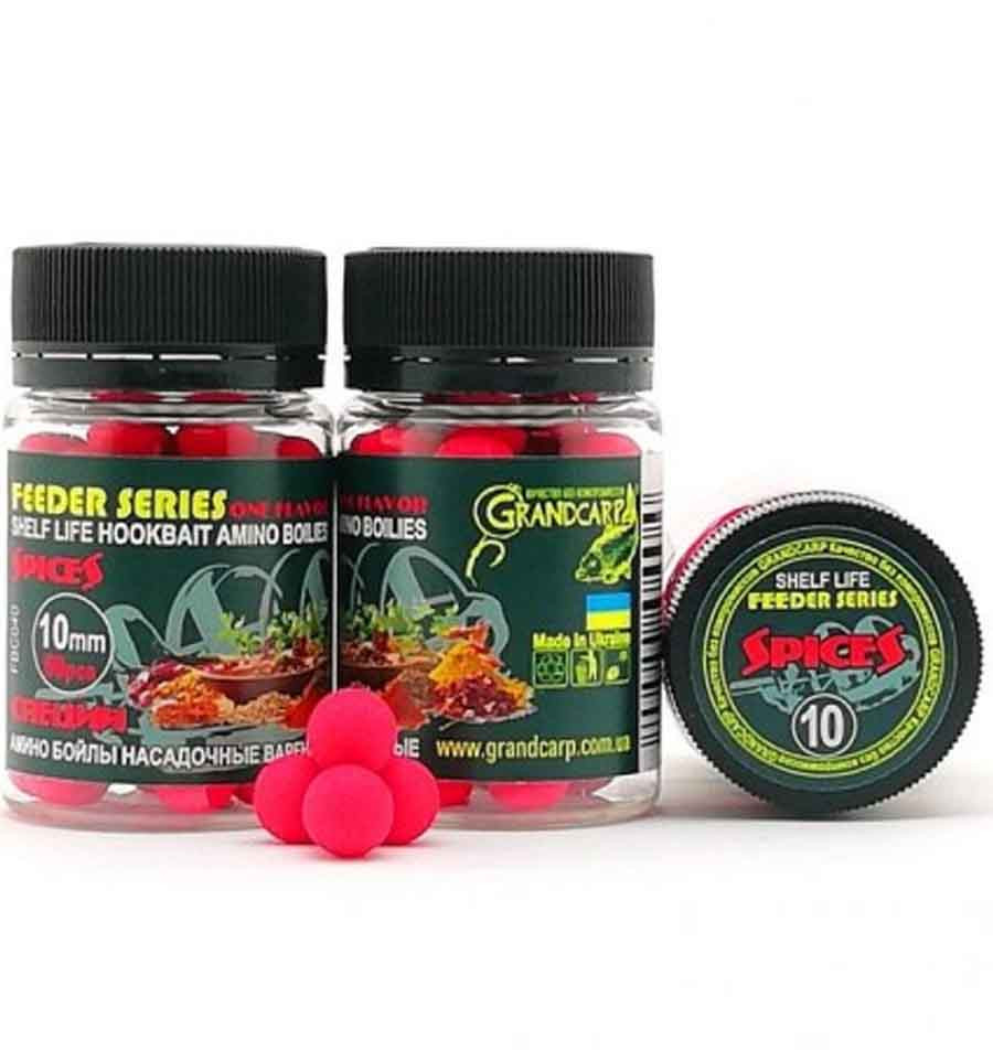 Аміно бойли СПЕЦІЇ варені насадкові Grandcarp серія FEEDER Ø10 мм. Донні бойли невеликого діаметру ми спеціально розробляли для лову на флет фідер. Проте їх успішно можна використовувати і для класичного карпфішингу, особливо коли потрібно забезпечити високий темп лову.