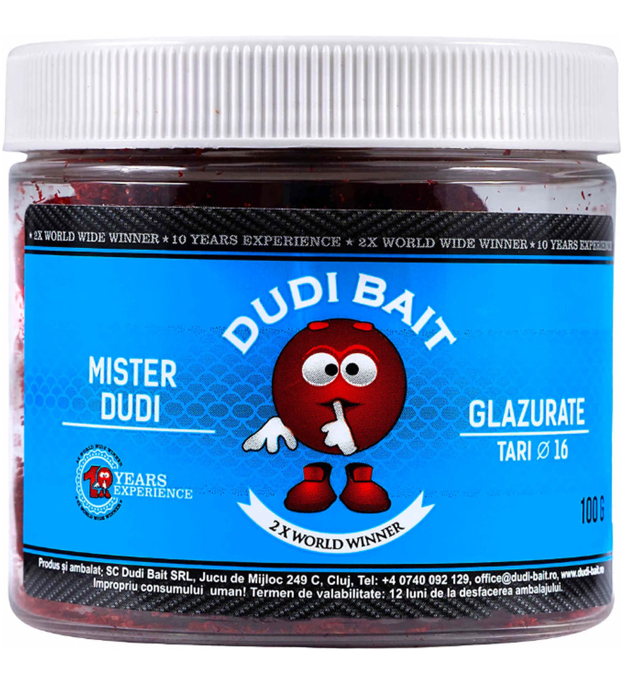 Насадочні варені бойли Dudi Bait Glazurate Mister Dudi – унікальна приманка, вкрита апетитною глазур'ю з атрактанту. Ця «глазурь» поступово розчиняється у воді, створюючи потужну ароматичну хмару, яка приваблює рибу навіть із великих відстаней.