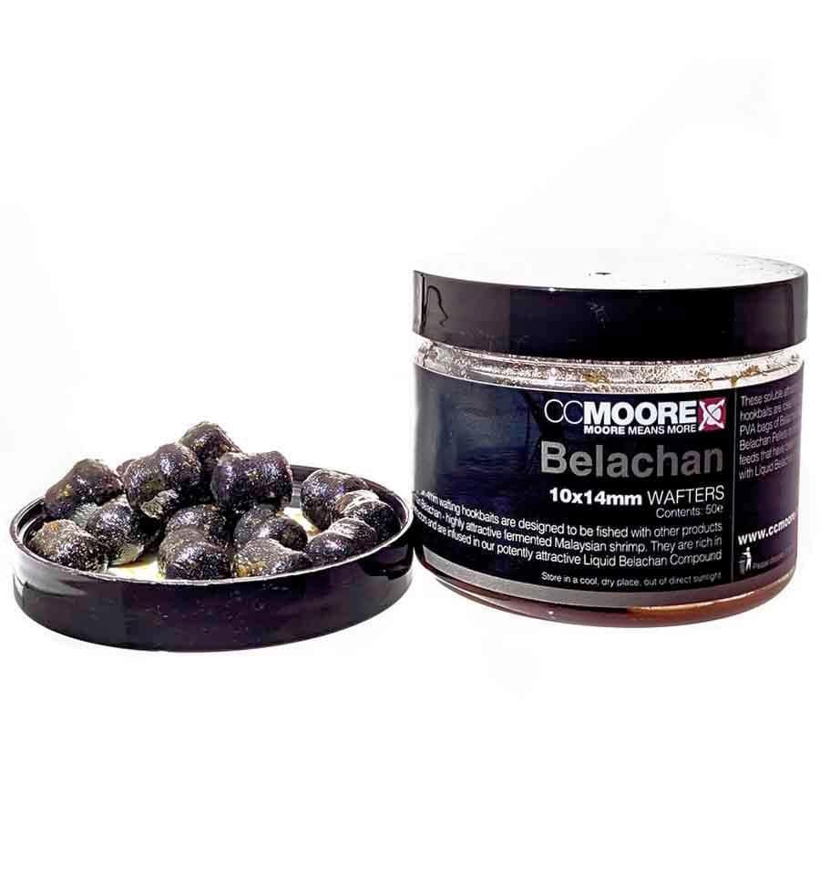 Бойли нейтральної плавучості в дипі CC Moore Belachan wafters — насадкові бойли від CC Moore у формі пелетса, з фірмовим екстрактом ферментованої креветки, який є потужним атрактантом для коропа.