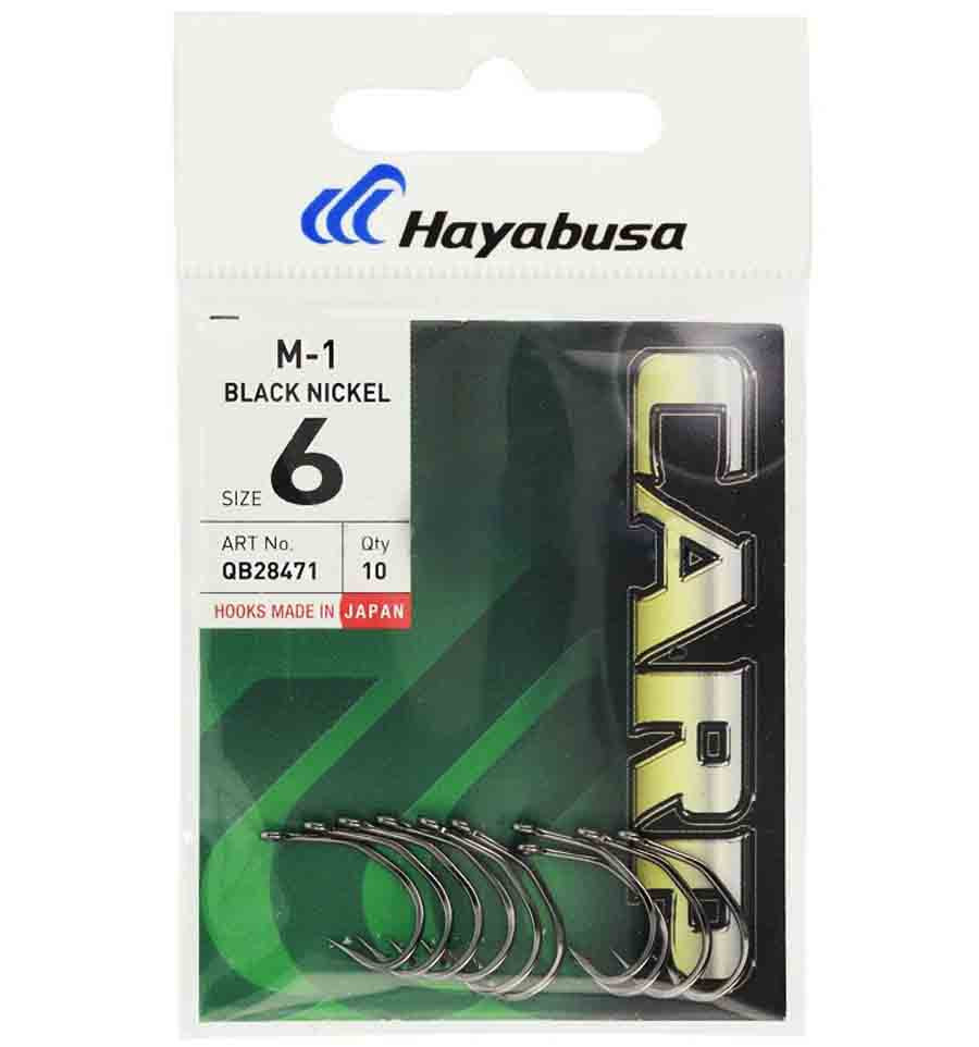 Карповые крючки Hayabusa M-1 Black Nickel черный никель Особенная форма крючков M-1 позволяет достичь предельно высокой реализации поклевок рыбы. Японские крючки произведены из высокоуглеродистой стали, что в сочетании с фирменной методикой их обработки гарантирует высокие прочностные показатели и коррозийную устойчивость