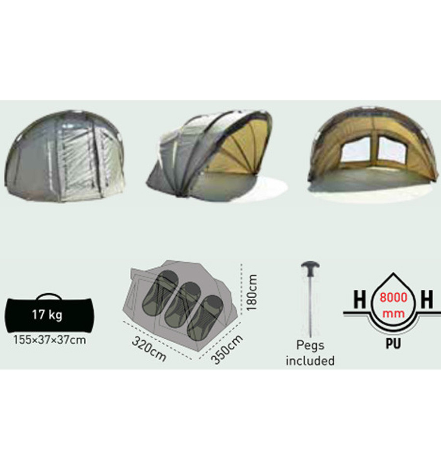 Новинка від компанії Carp Zoom - комфортний 3-місний намет Adventure 3 Bivvy. Дана модель має всі необхідні характеристики властиві сучасним короповим наметам. Наявність 3-х фронтальних та 2-х задніх вікон забезпечать необхідну вентиляцію у спеку. Надійний каркас водостійкість 8000 мм. і передній козирок, зроблять комфортним перебування в негоду. Розміри намету дозволять комфортно розміститися 3-м рибалкам з усім необхідним інвентарем. Для сильних холодів виробник передбачив "зимову" накидку, яку можна придбати окремо.