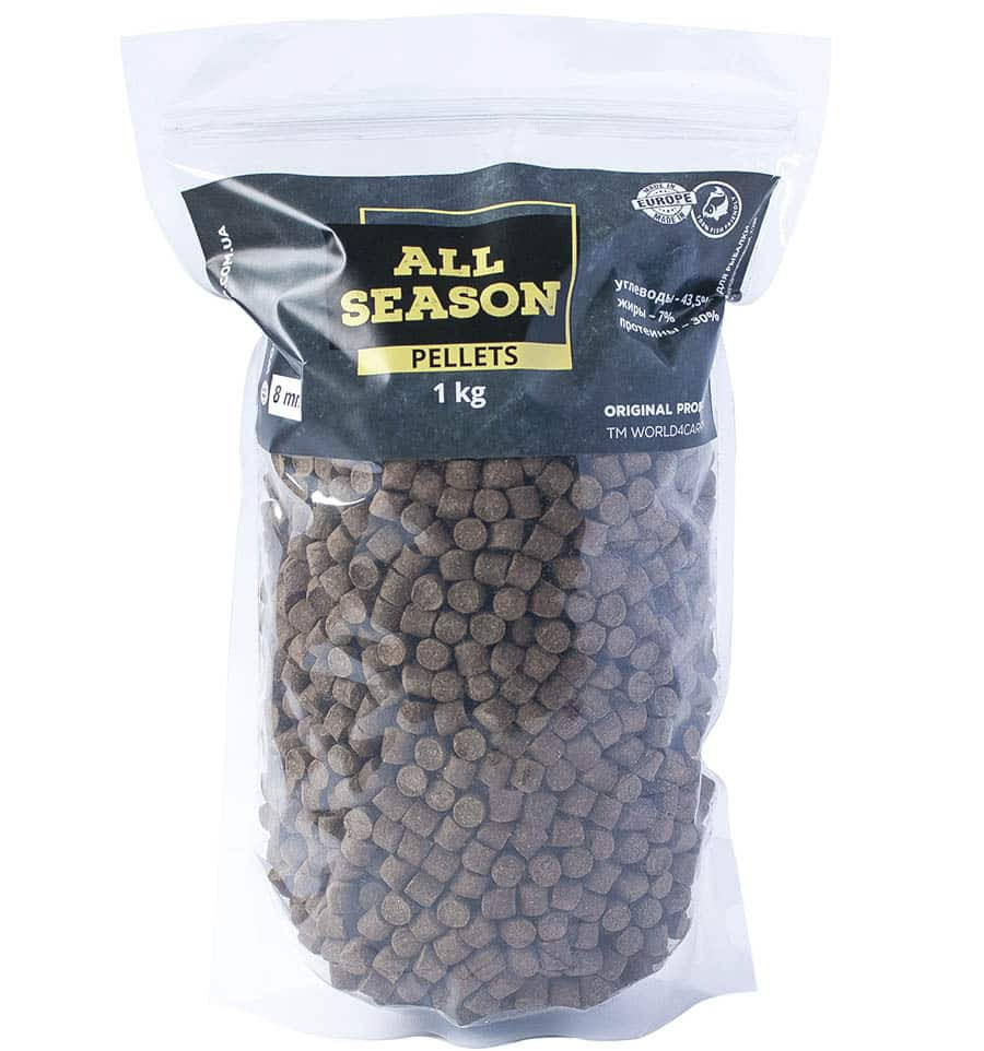 Виготовлений з найкращих натуральних інгредієнтів: рибне борошно, перероблені зернові, риб'ячий жир. Містить високий відсоток поживних речовин та стимуляторів апетиту у риб. Carp Pellets має швидку приваблюючу дію для коропа, завдяки гарній розчинності у воді та швидкому поширенню атрактантів і харчових тригерів. Цей пеллетс, завдяки низькій жирності, можна з великим успіхом застосовувати при лові в холодній воді. Вміст протеїну 30%, жиру 7%