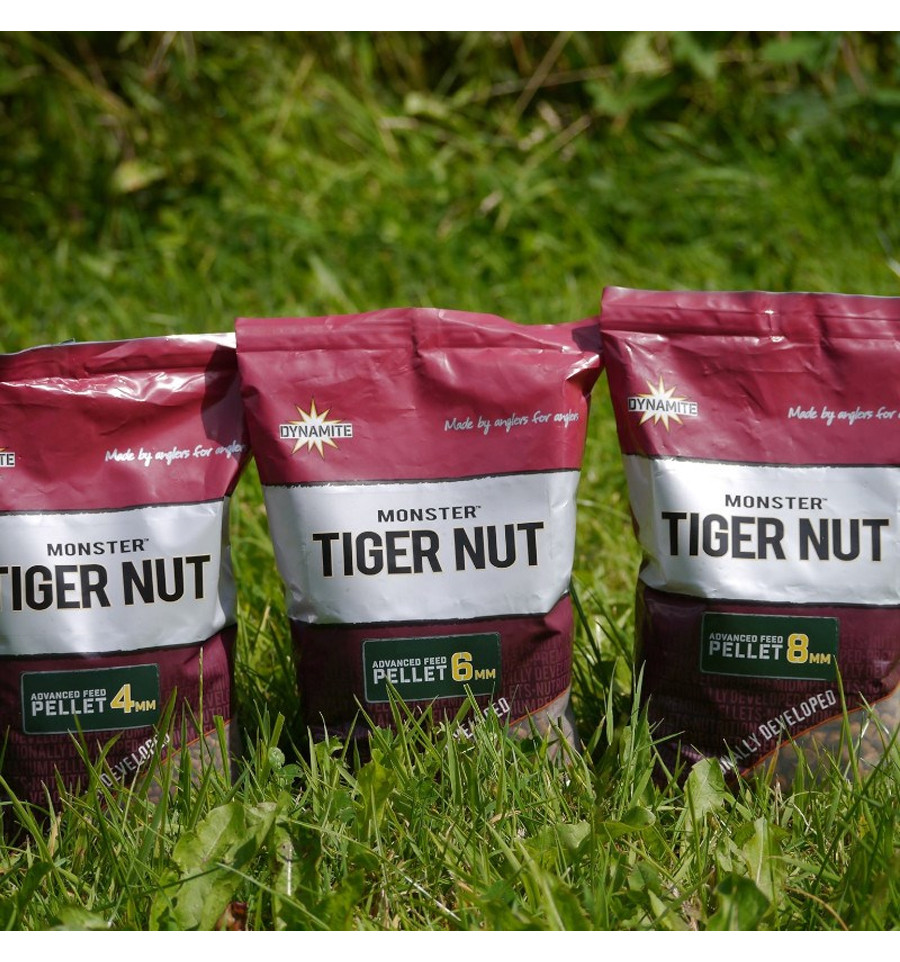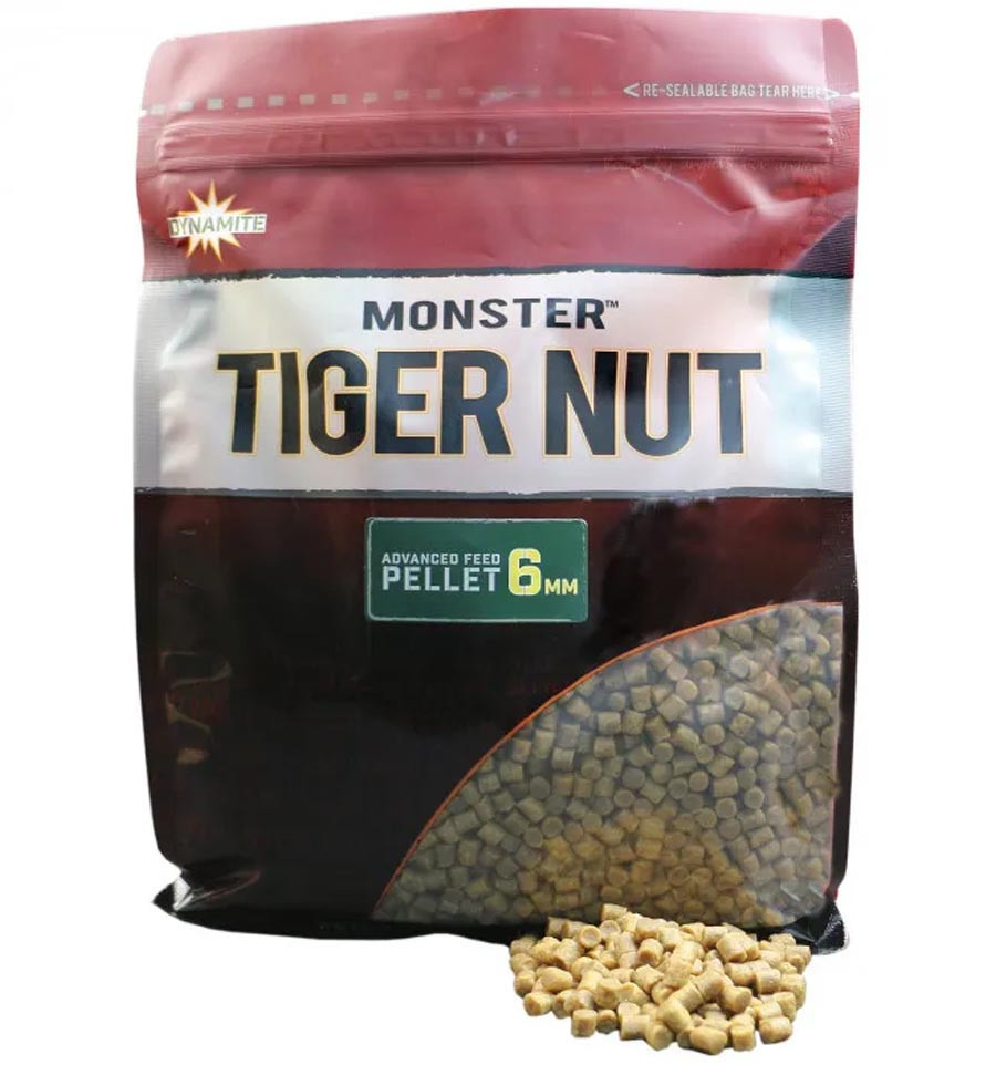 Ці гранули Monster Tiger Nut Pellets від Dynamite Baits , наповнені атрактантами та потужними стимуляторами годівлі, доступні у розмірах 4 або 6 мм і мають насичений солодкий смак, сприятливий для риб, і є чудовим варіантом у мішках з ПВА, а також у подухах та палицях. сумішей.