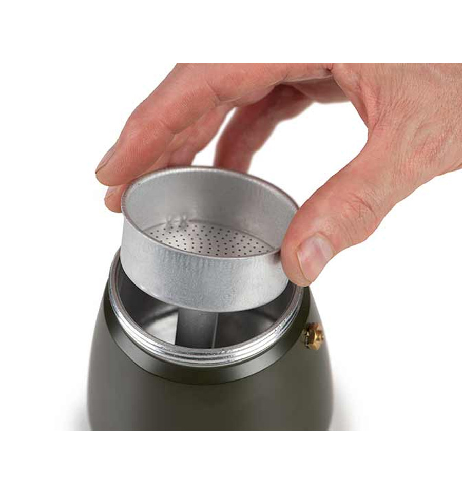 Принцип дії досить нескладний: вода нагрівається в нижньому відсіку, виходить пара, яка виштовхує рідину нагору, крізь шар подрібнених кавових зерен. У верхній частині збирається готовий еспресо. Внизу знаходиться ємність для води, в стінку якої вбудовується запобіжний (аварійний) клапан