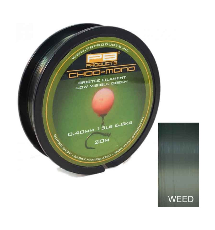 Поводковий матеріал жорсткий моно 0.45 мм PB Products - Chod Mono 9.1 кг / 20lb, 20 м - новий повідковий матеріал призначений від компанії PB Products, перш за все, для використання при виготовленні, що стали за останні кілька сезонів дуже популярними, оснащення chod rig. Цей монофільний матеріал випускається у трьох виконаннях: 15, 20 та 25 Lb. Завдяки жорсткості матеріалу практично виключені захльостування, також матеріал має властивість приймати та зберігати будь-яку форму вигину.