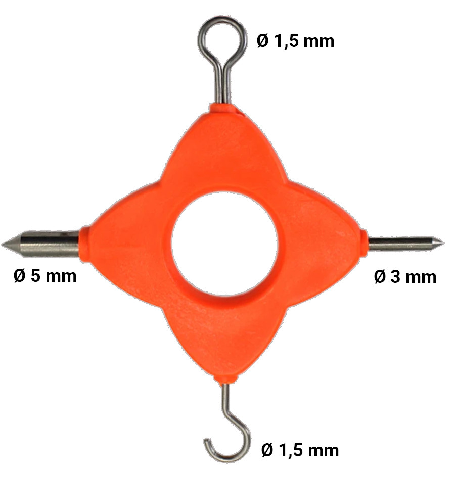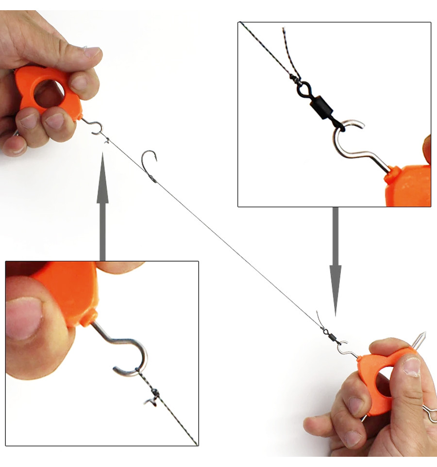 це незамінний інструмент для кожного рибалки, хто цінує точність та надійність своїх оснасток. Цей компактний девайс поєднує в собі чотири основні функції, необхідні для ефективної роботи з поводками, лісками та шнурами, дозволяючи створювати міцні та акуратні вузли за будь-яких умов.