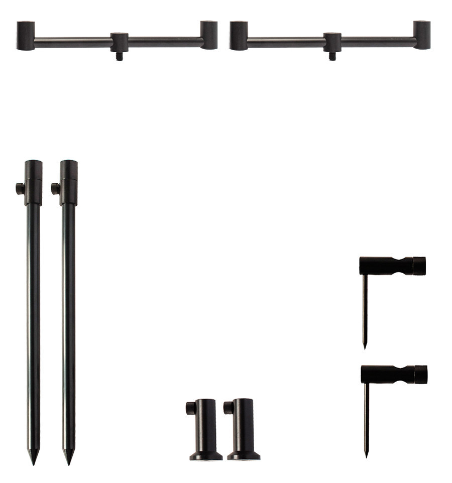 Практичний малогабаритний набір стійок, буз барів, стійок для помосту та стабілізаторів у сумці-чохлі. Набір розрахований на 2 коропові вудилища. Займає дуже мало місця та має легку вагу. Матеріал виконання обладнання - алюміній, а чохла - водонепроникний оксфорд кольору Coyote (Койот).