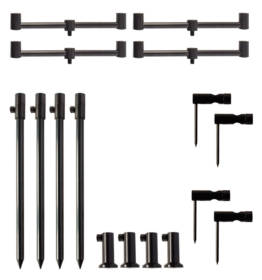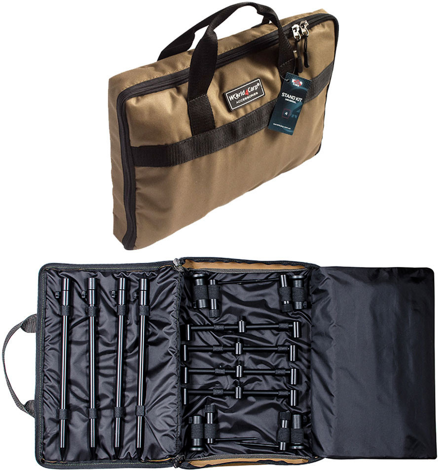Практичний малогабаритний набір стійок, буз барів, стійок для помосту та стабілізаторів у сумці-чохлі. Набір розрахований на 4 коропові вудилища. Займає дуже мало місця та має легку вагу. Матеріал виконання обладнання - алюміній, а чохла - водонепроникний оксфорд кольору койот.