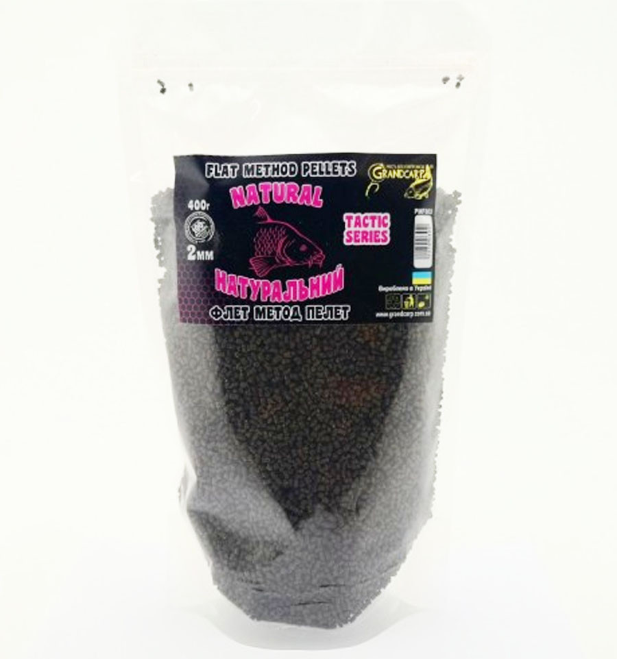 Флет метод пелет Grandcarp НАТУРАЛЬНИЙ серiї TACTIC Ø2 мм. 400 г
