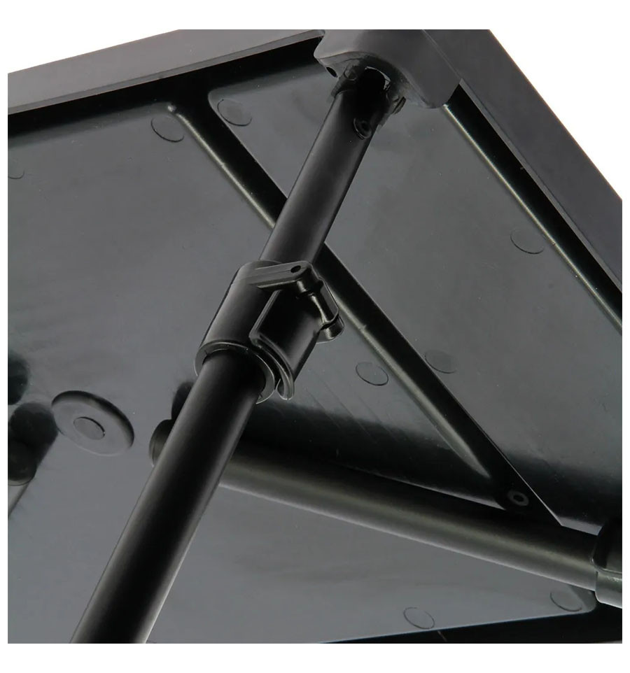 Рибальський столик має телескопічні ніжки, які можна піднімати, тож висота столу коливається від 29 до 40 см. Ніжки можуть бути зафіксовані спеціальною системою, щоб запобігти будь-яким небажаним падінням столу або речам, поміщених на ньому.