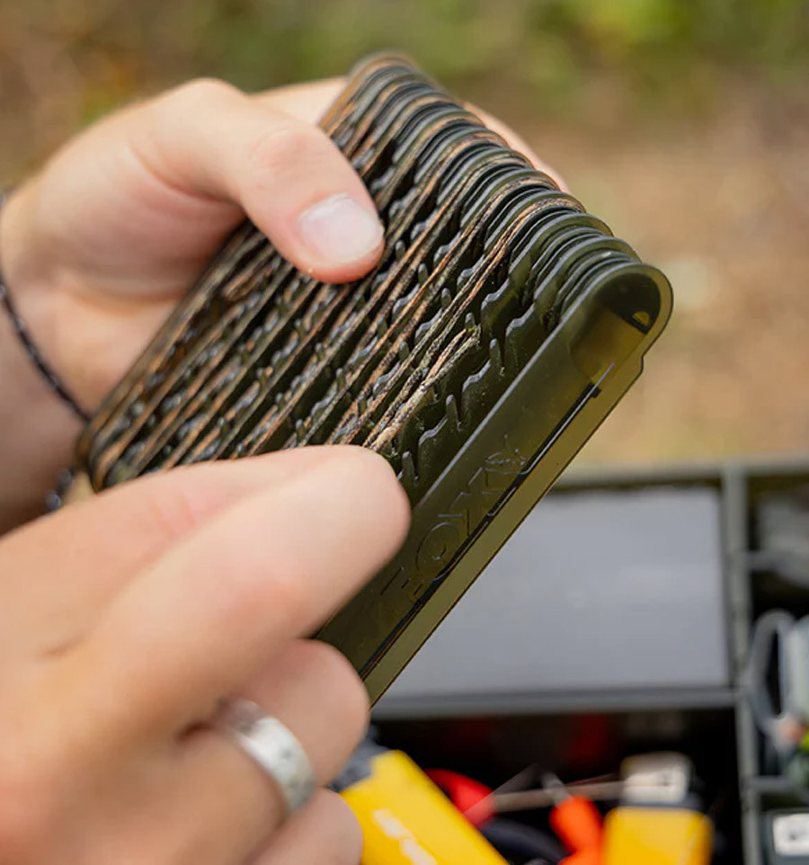 Лідкорниця дозволяє зберігати всі типи попередньо пов'язаних лідкорів за допомогою металевого штифта або формованих секцій кожуха. Ці лідкорниці можуть зберігати до 10 готових лідкорів, включаючи компоненти кріплення для грузил та повідець, такі як безпечні кліпси та намистини/рукави для вертольотів.