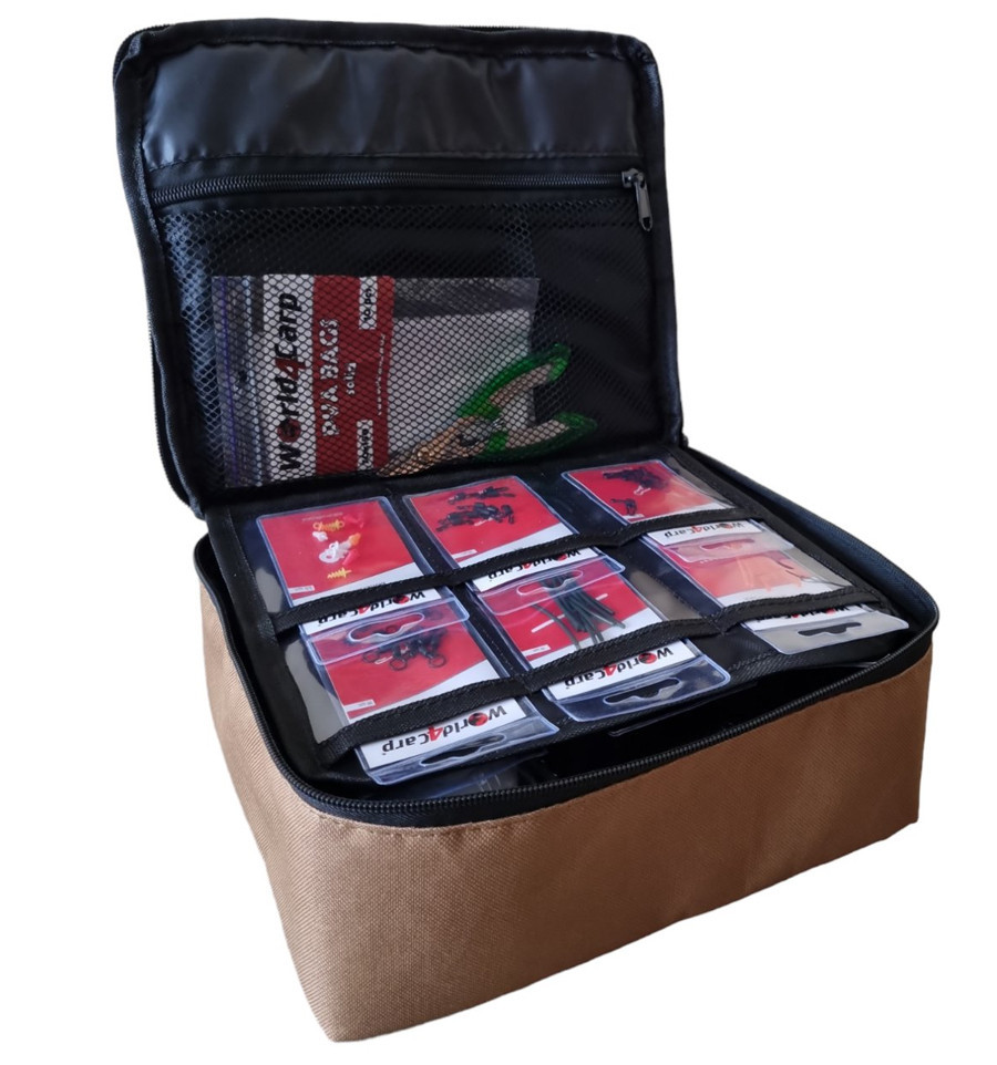 Структура сумочки нагадує книгу, що дозволяє «перегортати» окремі секції для легкого та швидкого доступу до будь-якої снасті.
