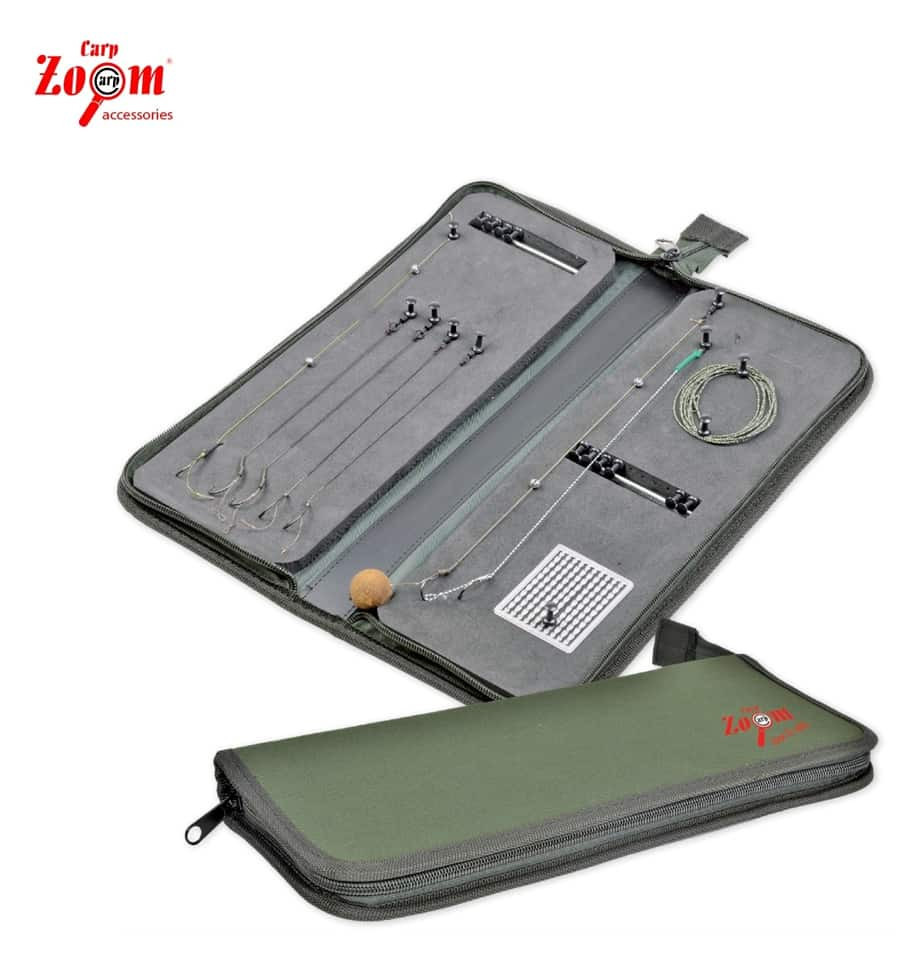 Carp Zoom Rig wallet - рибальська поводочниця Карп Зум спеціально розроблена для зберігання та транспортування готових повідців, у тому числі і бойових повідців та коропових оснасток. Повідниця для риболовлі виготовлена з високоякісного водовідштовхувального матеріалу та оснащена надійним замком-блискавкою для захисту вмісту від випадання. Усередині повідниці є дві жорсткі плати зі спеціальними шпильками, що дозволяє розмістити достатню кількість готових повідків необхідних розмірів і швидко змінити обірваний повідець на новий.