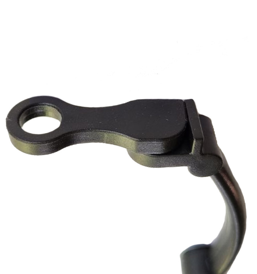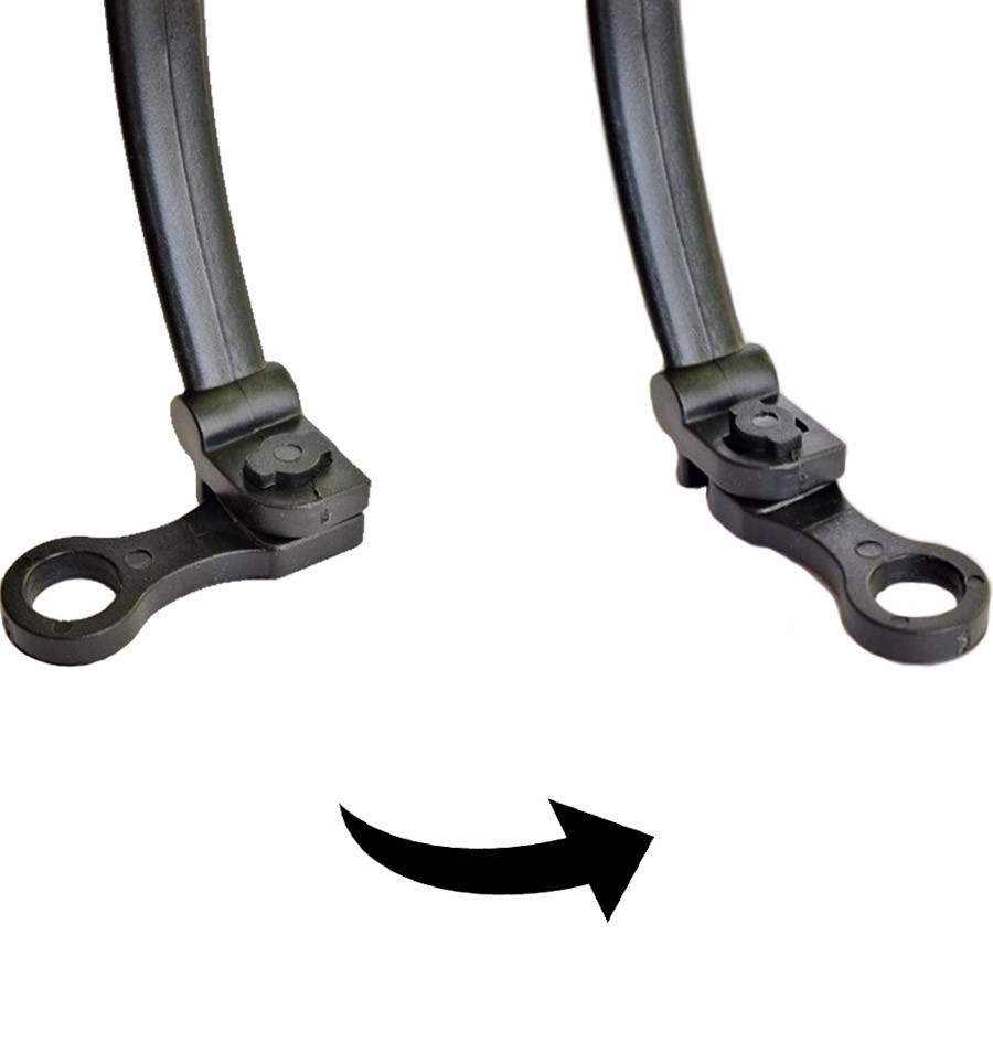 Для складання тримайте кліпсу перпендикулярно ніжці свінгера так, щоб пази обох частин збіглися. Вставте кліпсу з легким зусиллям до упору та поверніть на 90 грудусів. Тим самим забезпечивши щільну посадку.