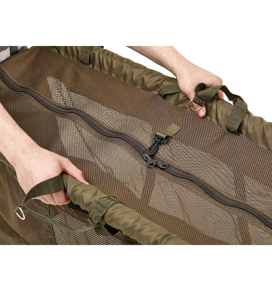 Сумка "Carp House" призначена для дбайливого зважування та тимчасового зберігання риби. Це справжній будинок для риби розміром 118х75х30 сконструйований таким чином, щоб максимально забезпечити безпечне перебування риби під час зважування та тимчасового перебування у воді. Ми зробили сумку з м'якого сітчастого матеріалу з великим розміром комірки та досить глибоку для кращого водообміну. Нейлонові вставки надають форму сумки, щоб уникнути заплутування риби і розташовані в місцях найбільшого зіткнення. Сумка має два поздовжні поплавці по всій довжині, що дозволяє їй триматися на поверхні води і утримувати/розташовувати рибу в горизонтальному положенні.