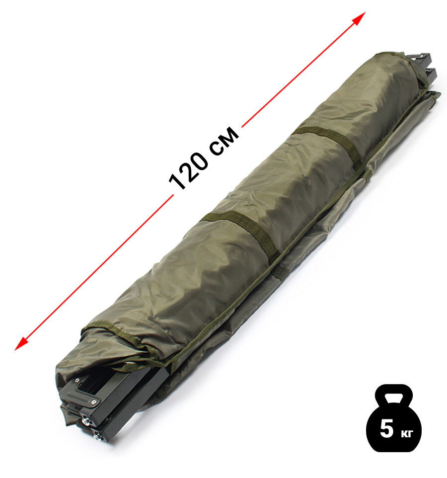 Глибина мату за відсутності навантаження (без риби) становить 22см. Середня висота регульованих ніжок – 50см. Загальна вага аксесуара – 5,1 кг.